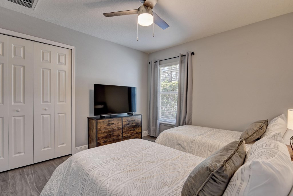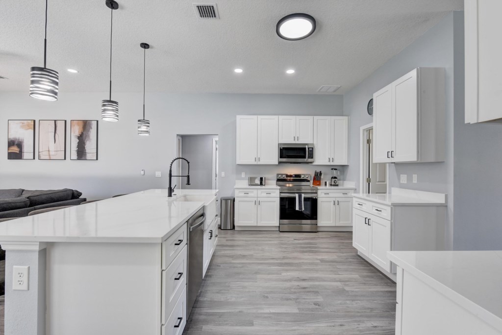 This home located on the prestigious Highlands Reserve Golf & country club is one not to miss. The home consists of 4 bedrooms, 3 bathrooms, two seating areas and separate dining area. This modern designer kitchen and island lives central to the home and has everything you need for your stay. The well decorated bedrooms and designer bathrooms really offer the wow factor for your stay. The oversized pool deck consists of comfortable seating areas, sun loungers with an oversized inviting pool and spa overlooking the golf course. With no rear neighbors and the sun all day this west facing deck is the perfect place to unwind after a busy day and watch the beautiful sunset.