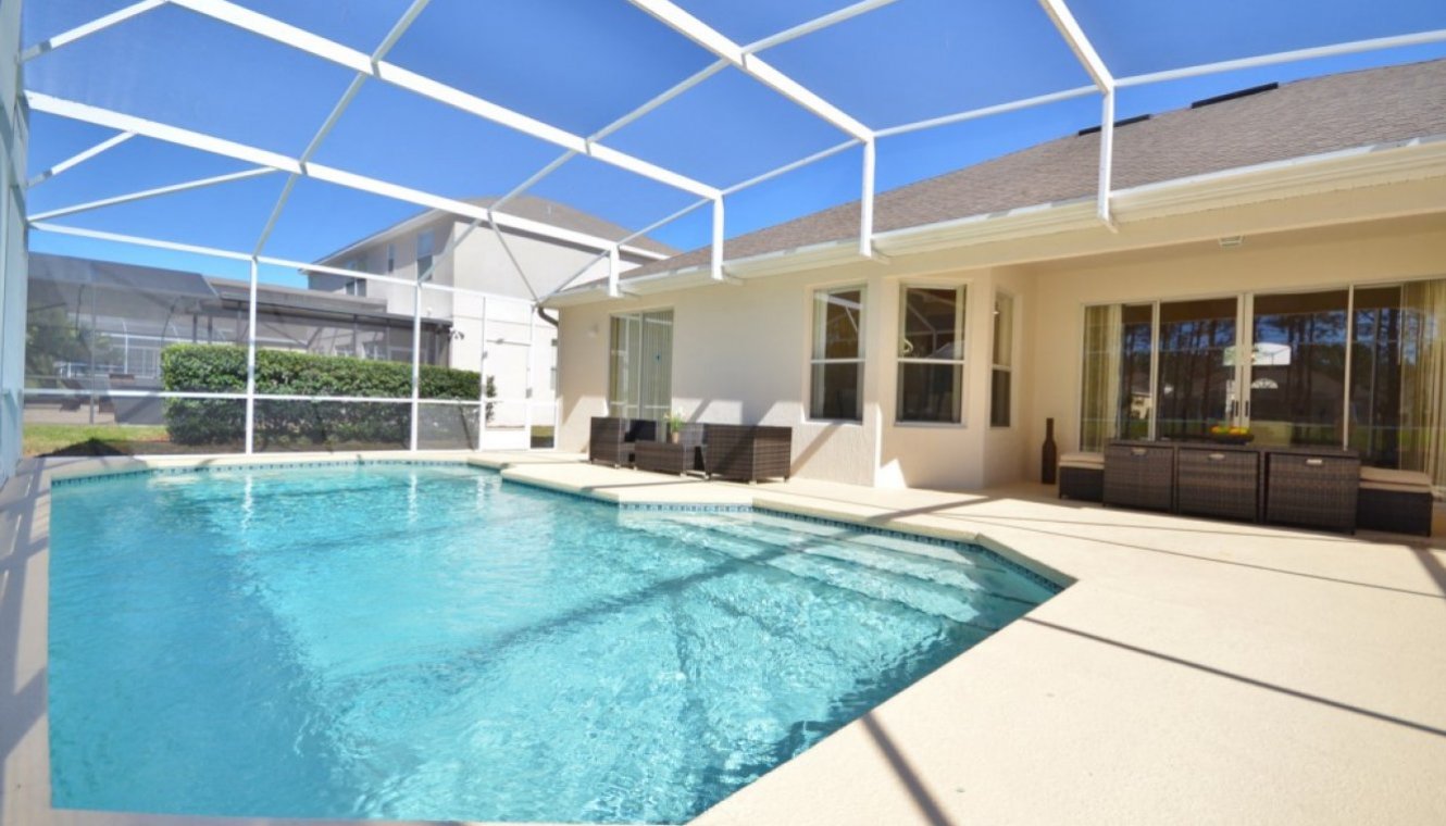 This very spacious 5 Bedroom 3 bath Villa is ideal for 2 families or large groups sharing. This attractively furnished & well-equipped villa has a cosy living room to the front of the house as you enter the main door. The entrance leads into the large open plan family room, dining nook and kitchen. There's also a games room and TV's in all the bedrooms.The extra large enclosed pool deck with private 32ft pool and conservation woodland views is the perfect place to relax and enjoy the endless sunshine. Other conveniences include free Wi-Fi Internet access, optional pool heat (where available), and in-unit laundry facilities.