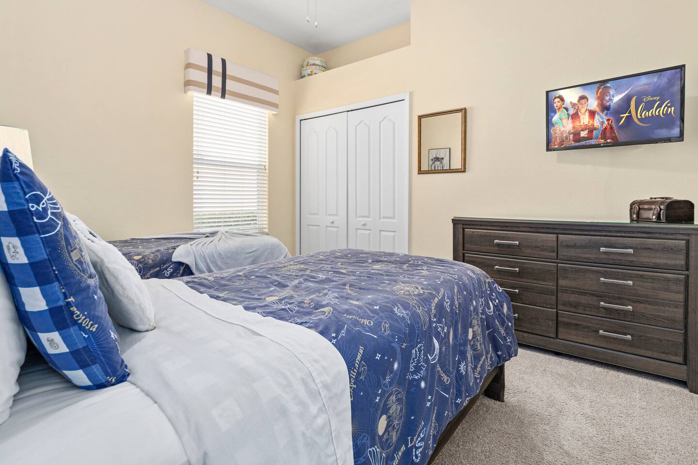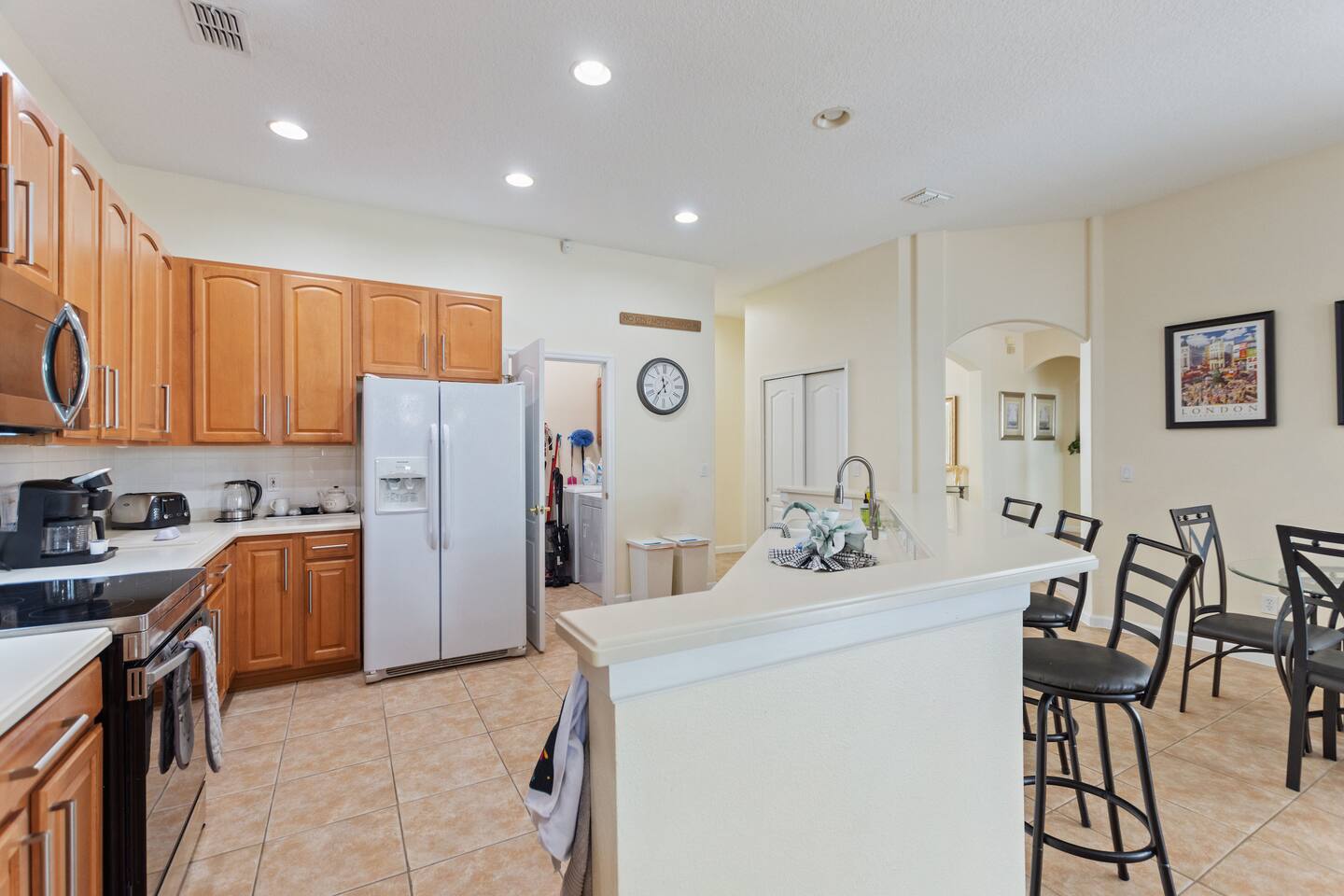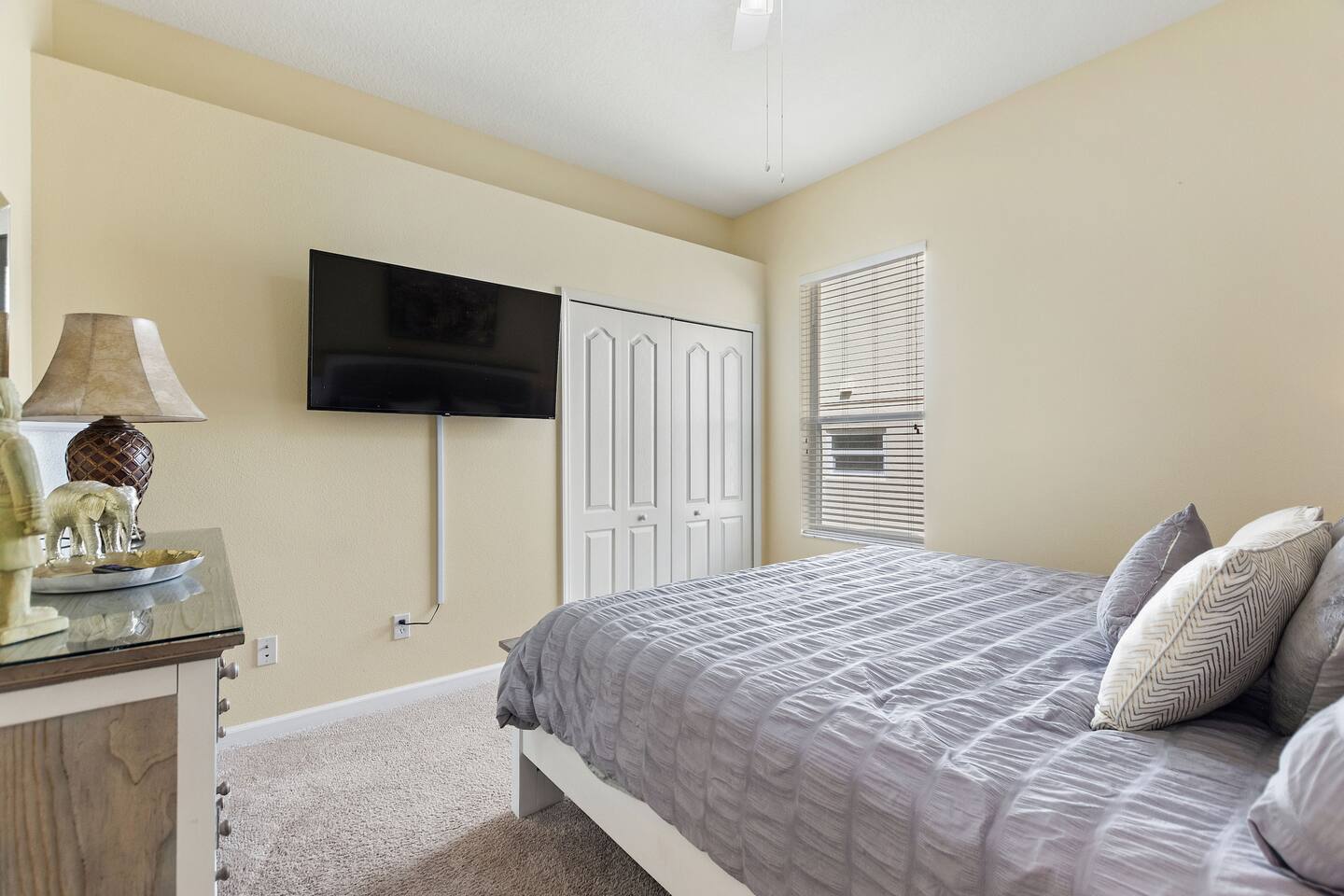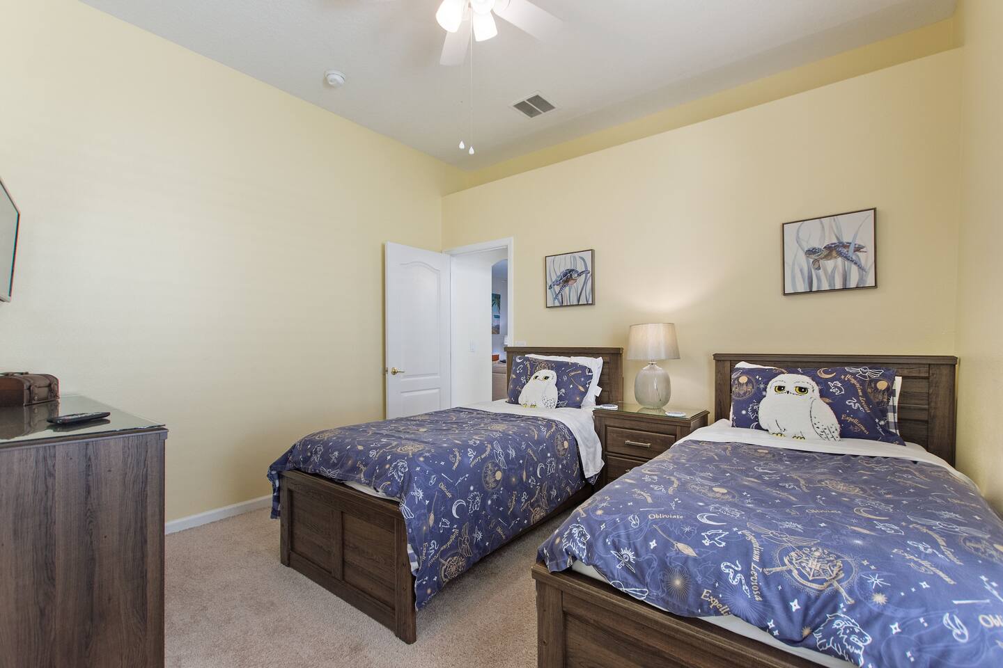This luxury 5 bedroom 3 bathroom villa with 2 master bedrooms is perfect for two families sharing with plenty of space for everyone to spread out. Features include enviable golf course views, over sized private west facing pool deck with lanai, free internet connection, and a games room. As you step in through the impressive glass panelled front door of this fabulous villa you are greeted with a beautifully tiled entrance foyer with the first of two living rooms in front of you. Patio doors lead out to the pool deck. Walk through to the airy open plan kitchen, breakfast nook and large family room. This room is perfect as a place to socialize, watch the large LCD TV or relax and look out onto the swimming pool.