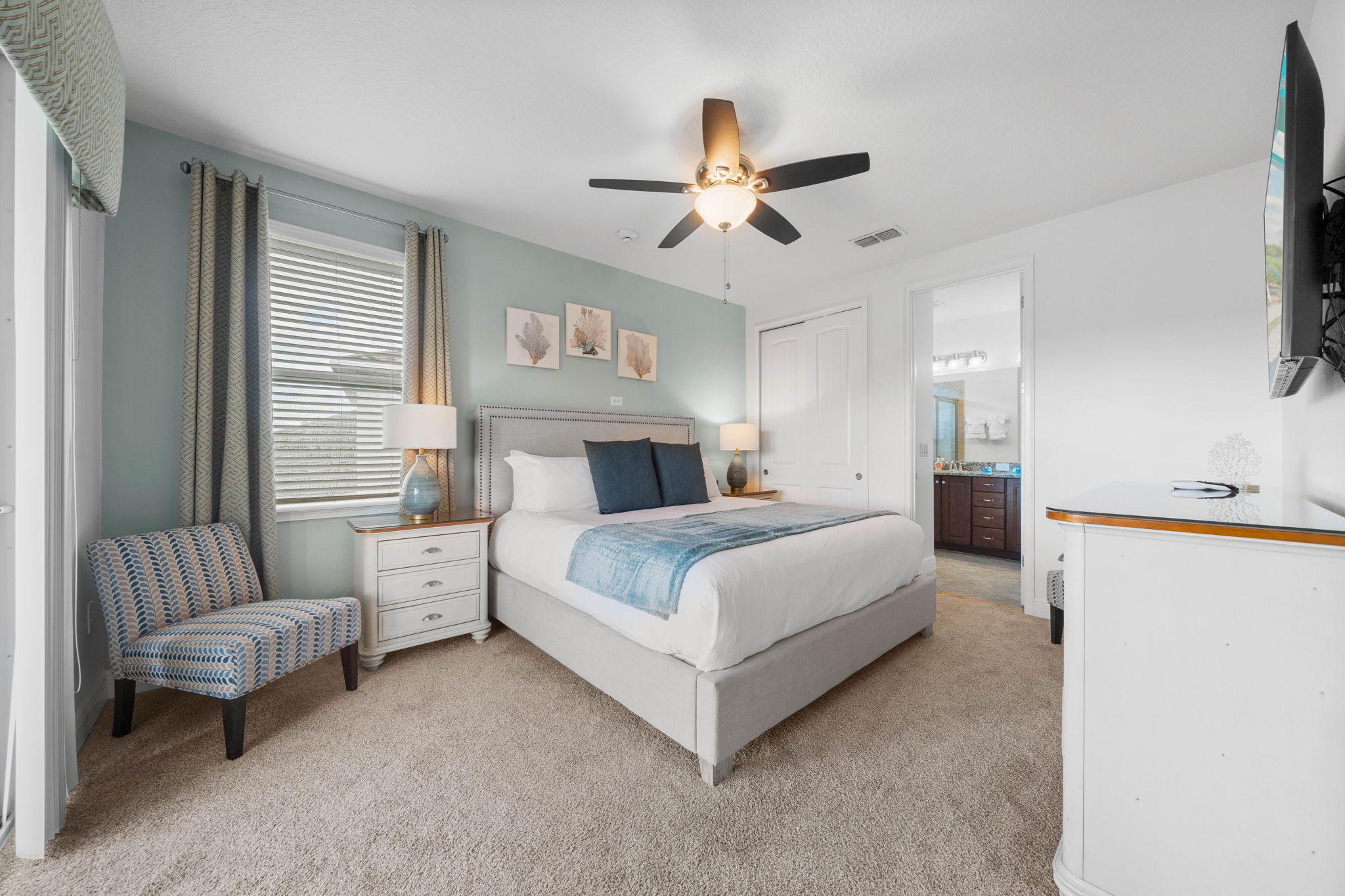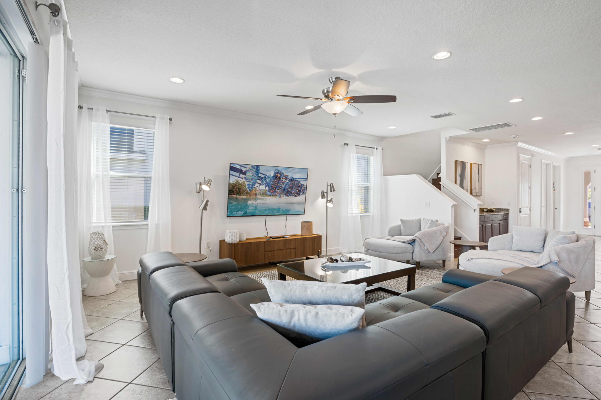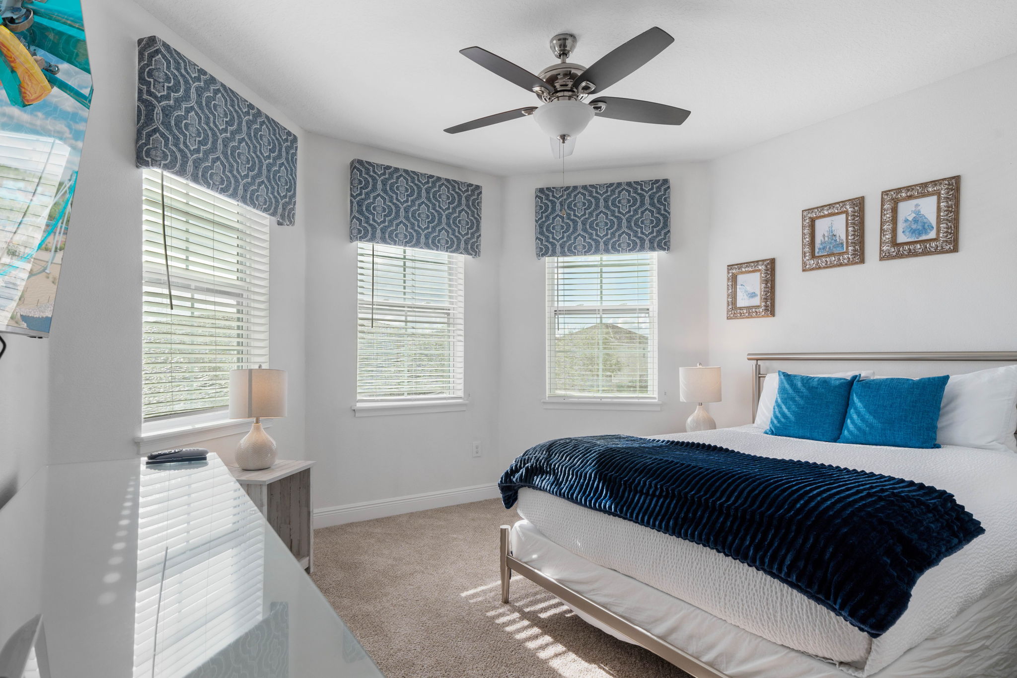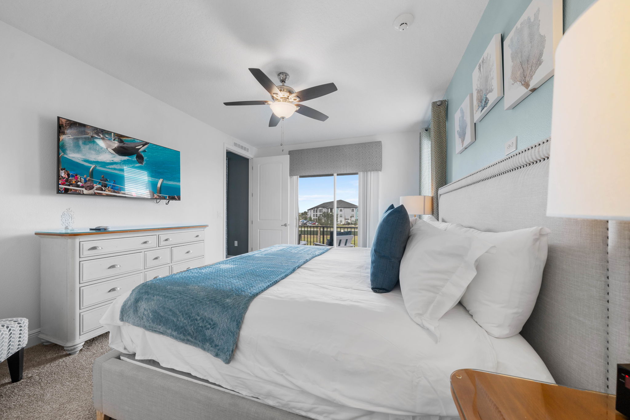 A fabulous, spacious 11 bedroom luxury villa that sleeps 22 people, perfectly suited for multiple families sharing or large family get togethers. Located in one of Orlando's premier resorts close to Disney, this beautiful home occupies a large lot providing privacy and space for outdoor games and relaxation. This substantial home enjoys open plan kitchen dining and seating area on the ground floor. The kitchen is fully equipped with everything you'd need, stainless steel appliances and marble counter tops. The dining table can accommodate up to 14 people, and a large L shaped sofa and armchairs with a wall mounted TV are next to large glass sliding doors that lead out to the pool deck. Upstairs, a large loft room with kitchenette, Pool table, bar area, drinks fridge and TV with X Box provide an alternative space for adults or children to hang out. There's also a separate cinema room has stepped seating and a large screen with projector for that movie night in. There is a games room in the converted garage which features a basketball game, foosball and a ping pong table. With four king sized ensuite bedrooms on the ground floor, and upstairs, two king ensuite bedrooms, a king bedroom, a queen bedroom, a twin and full ensuite bedroom, a twin full bed ensuite bedroom, and a twin bunk ensuite bedroom. Resort amenities, including water park access, are NOT available for stays at this house. However, you can still visit the clubhouse's restaurant, bar and gift shop.