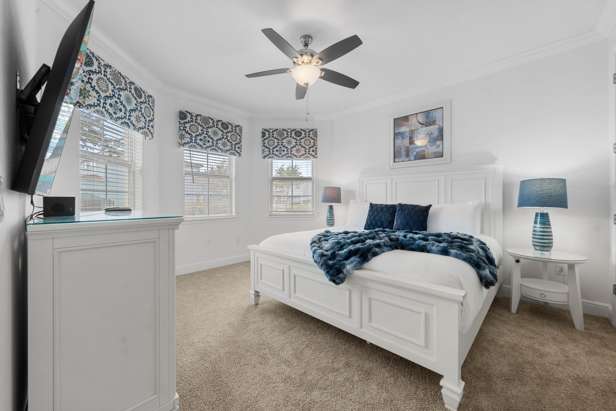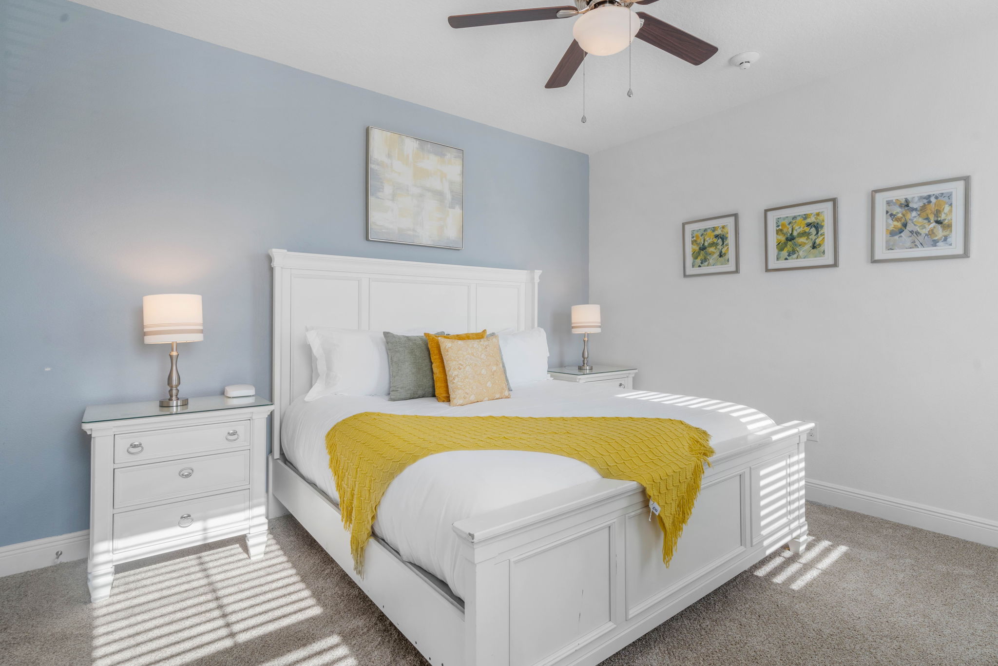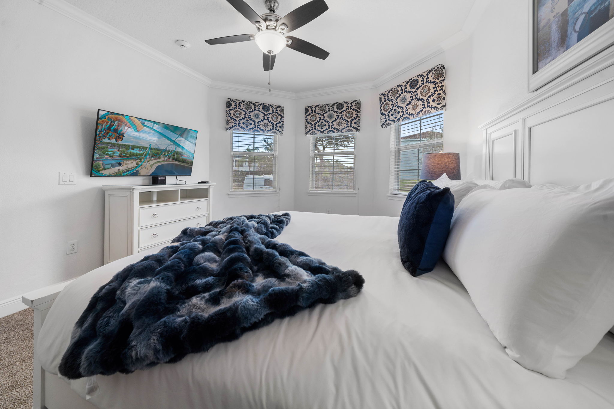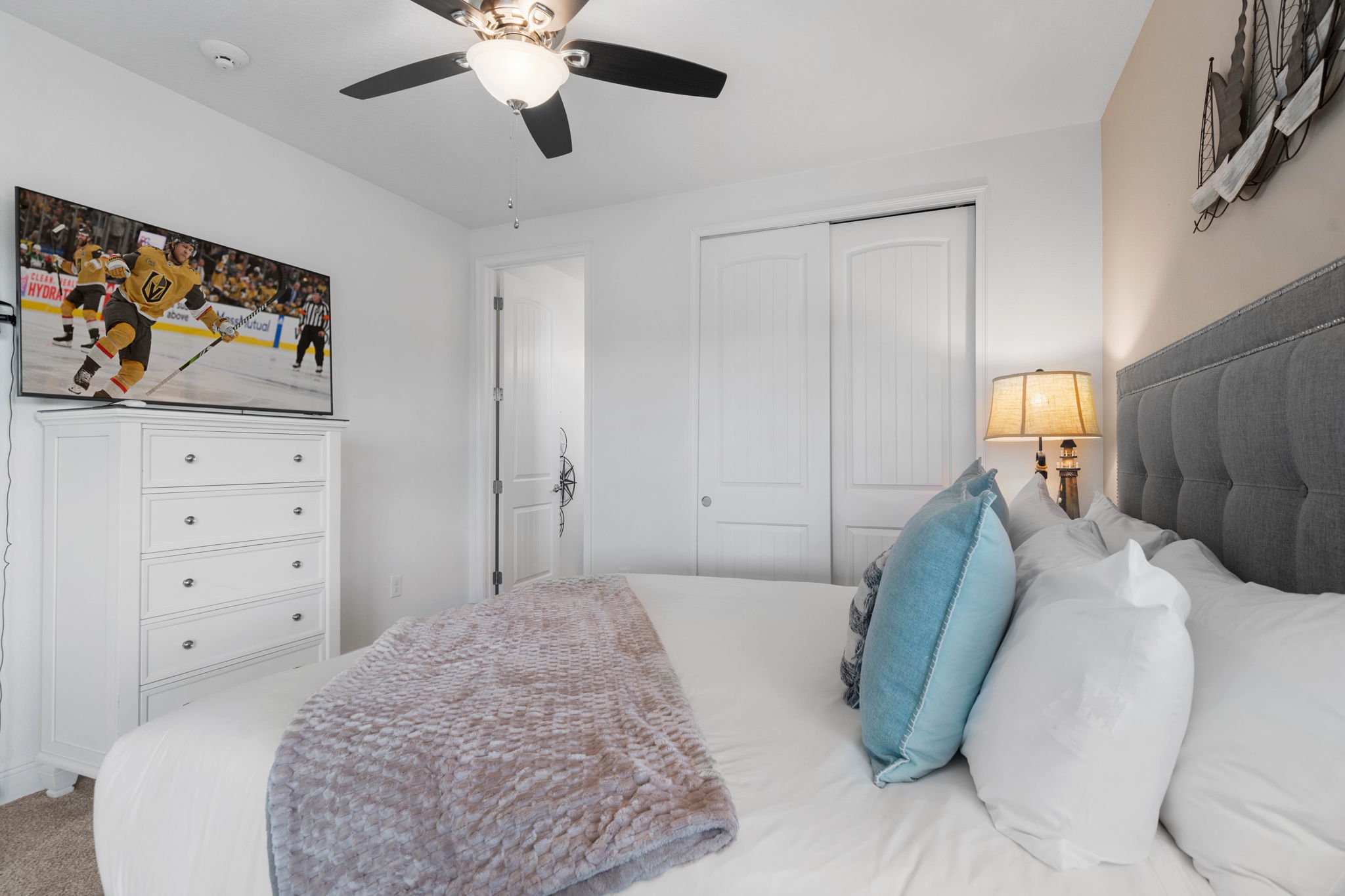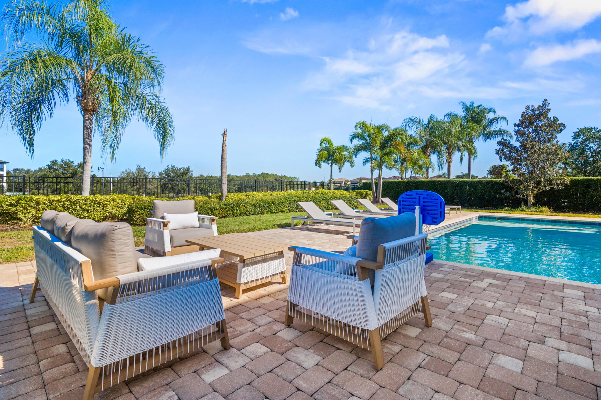 A fabulous, spacious 11 bedroom luxury villa that sleeps 22 people, perfectly suited for multiple families sharing or large family get togethers. Located in one of Orlando's premier resorts close to Disney, this beautiful home occupies a large lot providing privacy and space for outdoor games and relaxation. This substantial home enjoys open plan kitchen dining and seating area on the ground floor. The kitchen is fully equipped with everything you'd need, stainless steel appliances and marble counter tops. The dining table can accommodate up to 14 people, and a large L shaped sofa and armchairs with a wall mounted TV are next to large glass sliding doors that lead out to the pool deck. Upstairs, a large loft room with kitchenette, Pool table, bar area, drinks fridge and TV with X Box provide an alternative space for adults or children to hang out. There's also a separate cinema room has stepped seating and a large screen with projector for that movie night in. There is a games room in the converted garage which features a basketball game, foosball and a ping pong table. With four king sized ensuite bedrooms on the ground floor, and upstairs, two king ensuite bedrooms, a king bedroom, a queen bedroom, a twin and full ensuite bedroom, a twin full bed ensuite bedroom, and a twin bunk ensuite bedroom. Resort amenities, including water park access, are NOT available for stays at this house. However, you can still visit the clubhouse's restaurant, bar and gift shop.