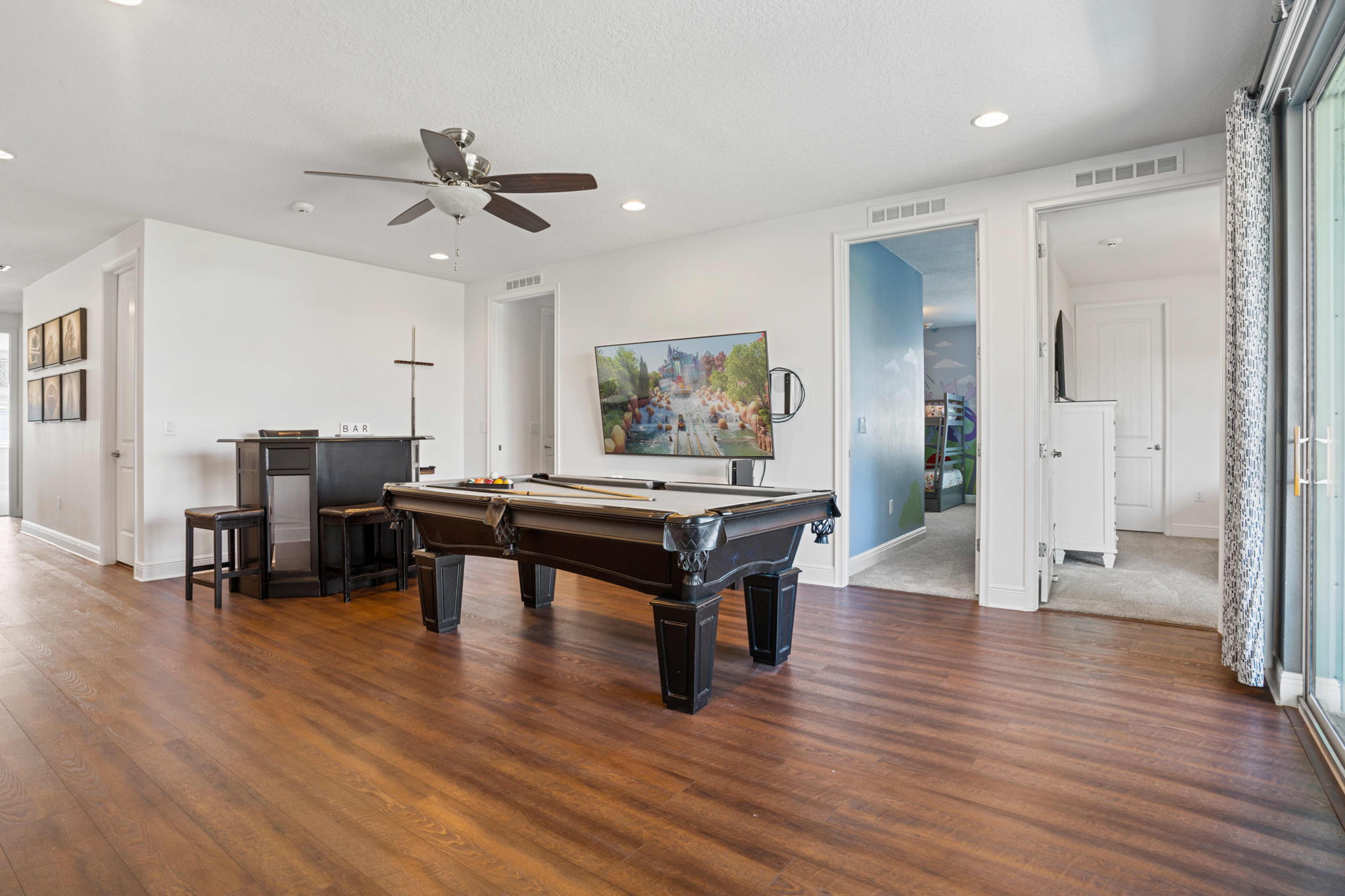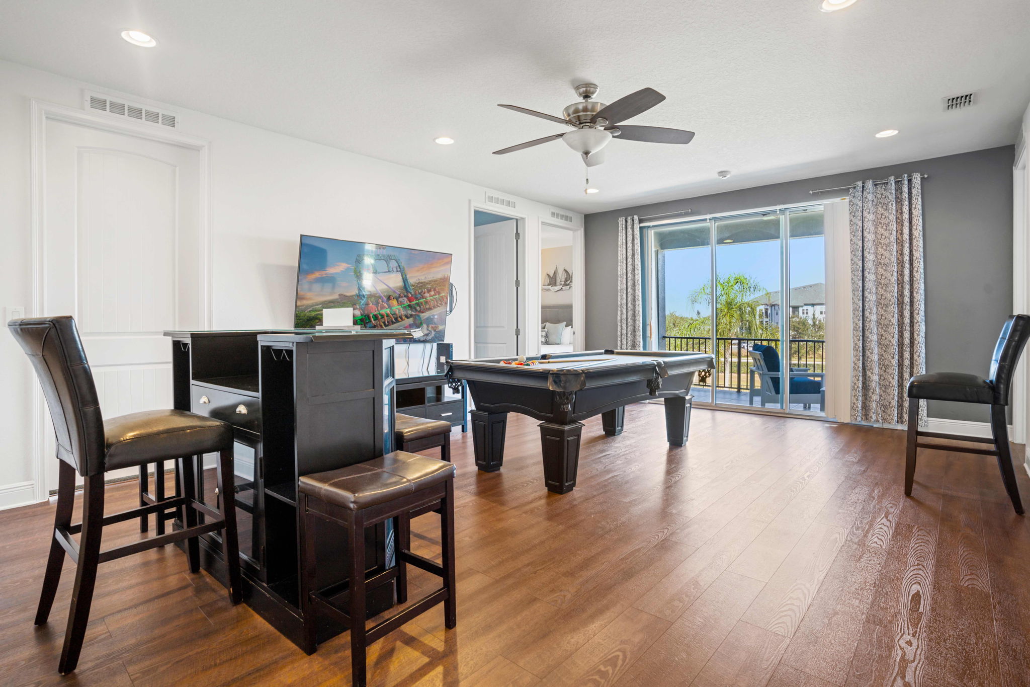 Upstairs with pool table, foosball, X-box, TV, and wet bar