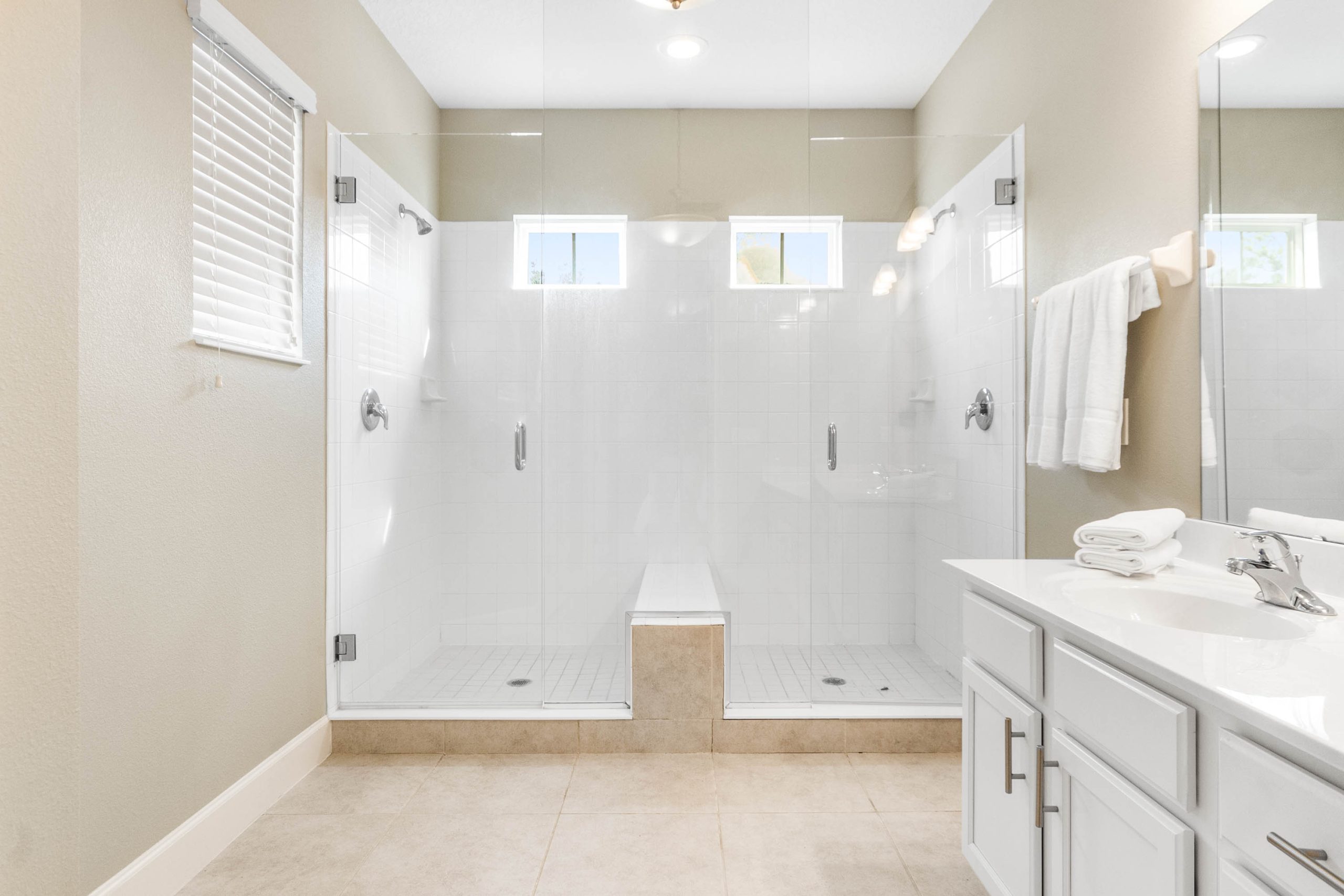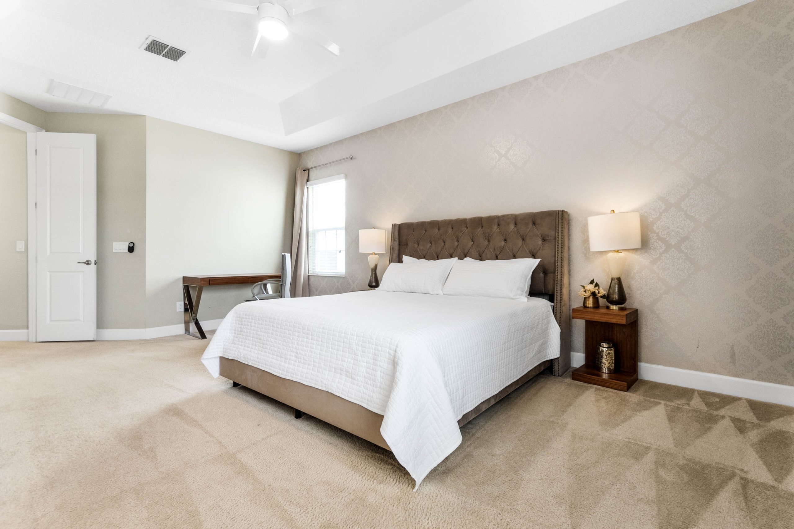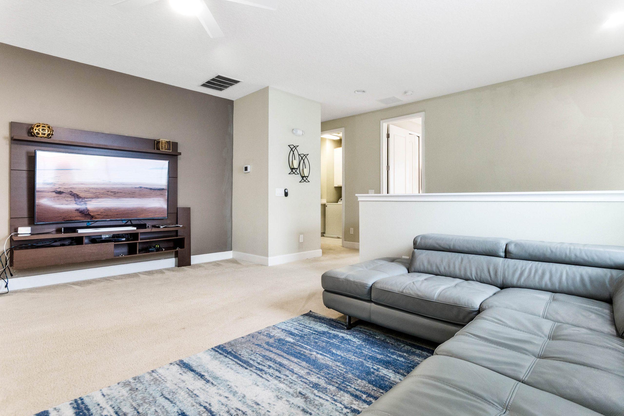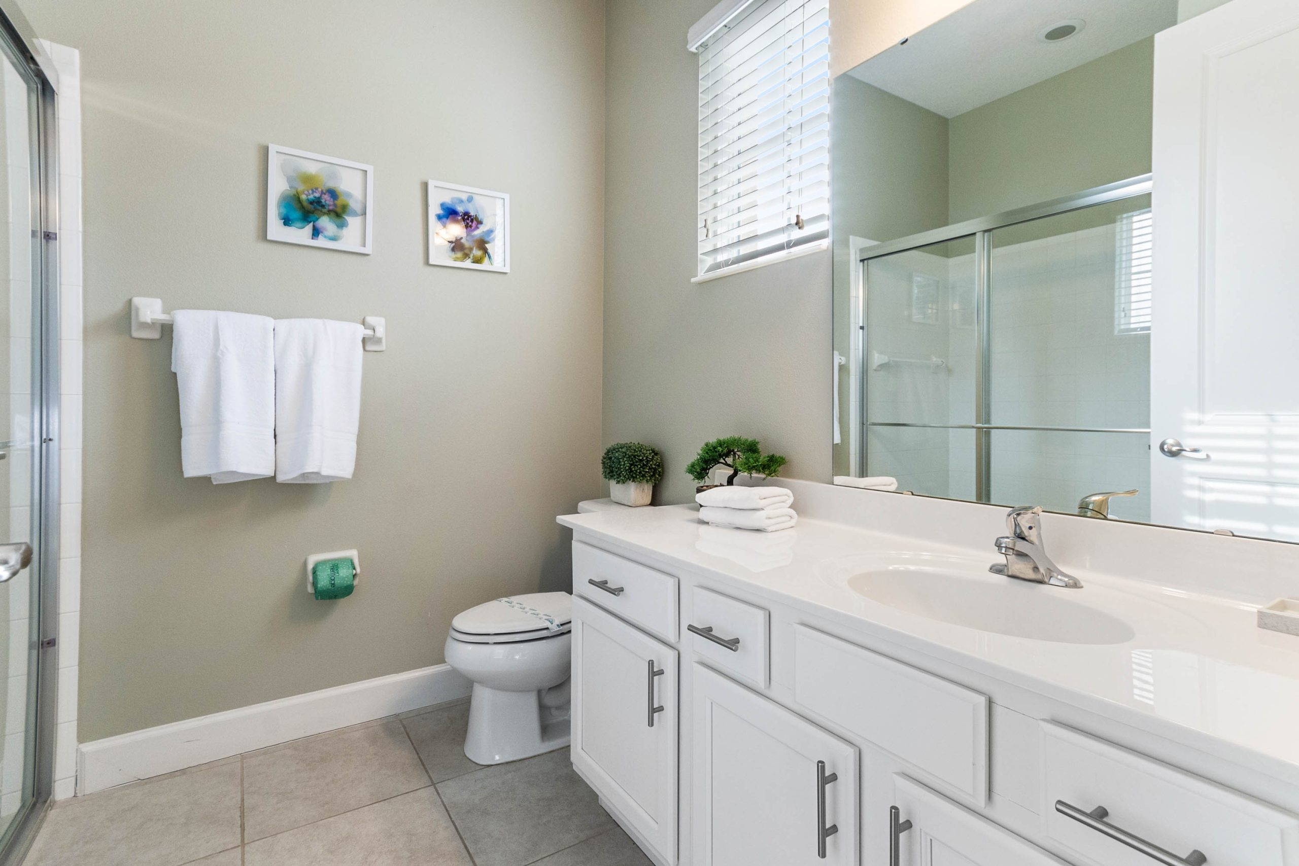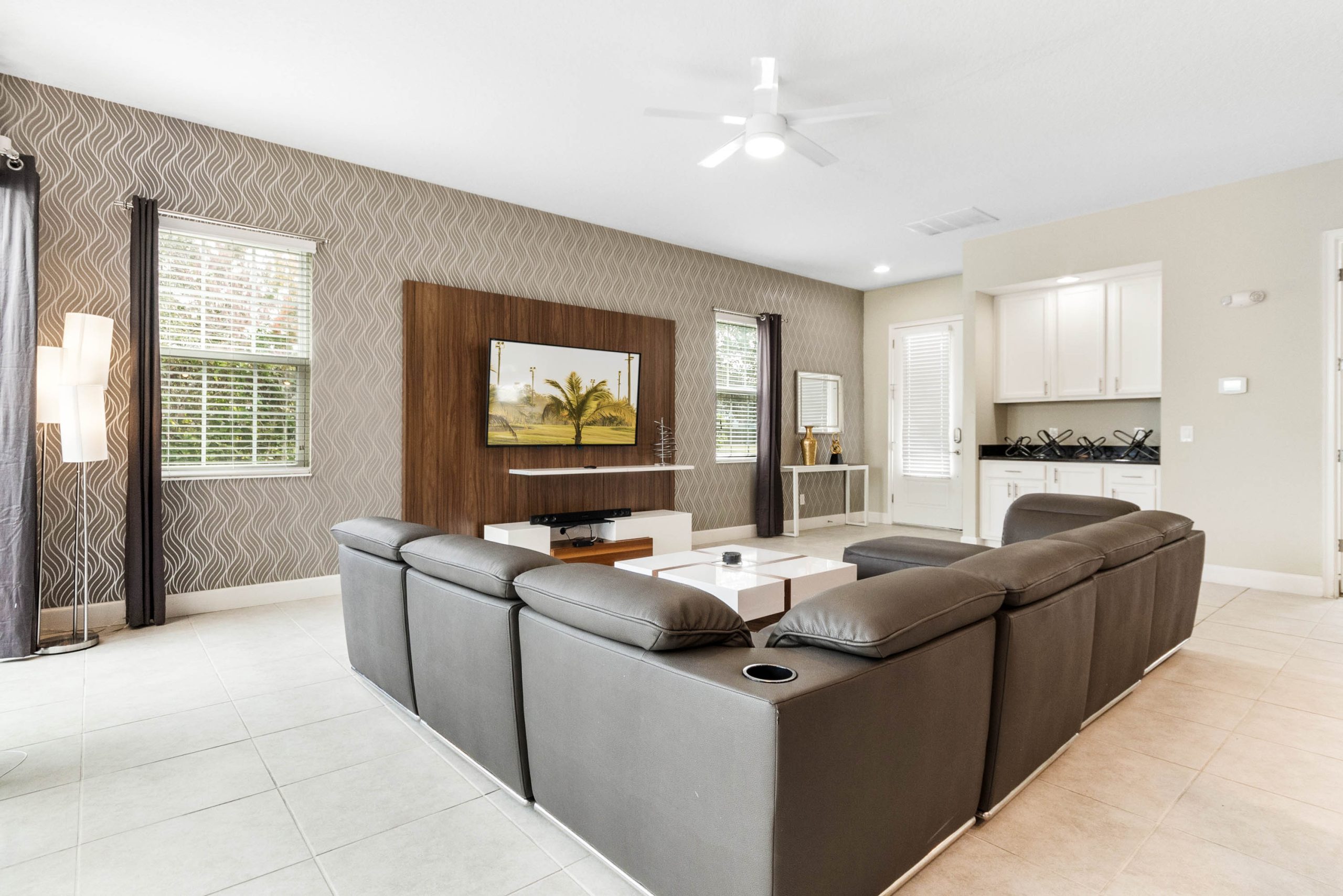 Stunning 3,045 sq. ft pool home located in the prestigious Patriots Landing neighborhood of Reunion Resort. This exclusive community offers Key West style villas with charming pastel colour schemes, surrounded on three sides by serene conservation areas and overlooking the Arnold Palmer Legacy Golf Course. This beautifully decorated and kitted out home has five bedrooms with a King ensuite, two Queen size bedrooms, a twin with two full sized beds, and a twin room. The open plan ground floor includes a large comfy seating area with a flat screen smart tv, the fully equipped kitchen, and a dining table with seating for eight, and two sets of sliding doors out on to the pool deck. There's also a large upstairs lounge room with an extra large tv and a mini bar.