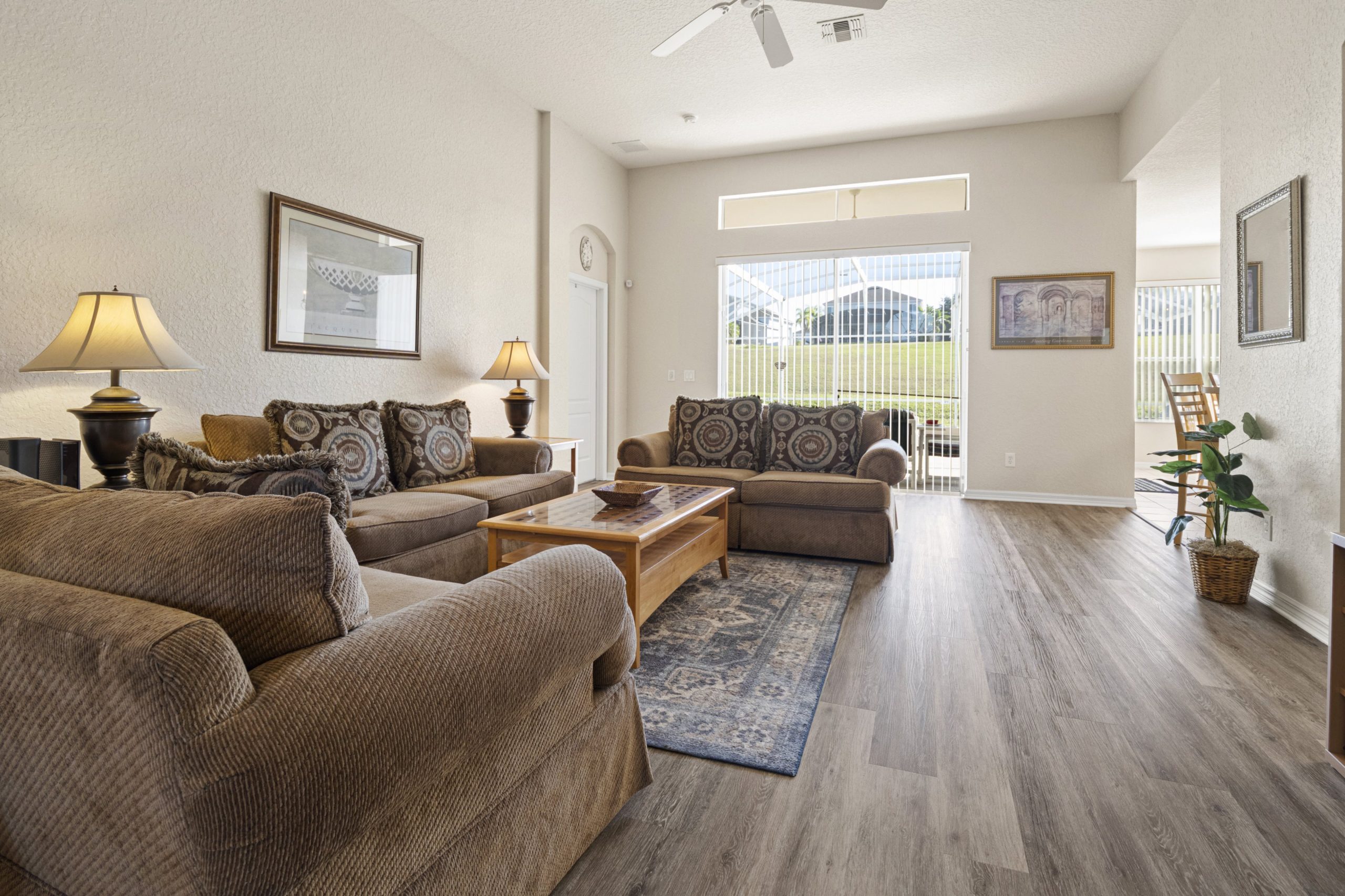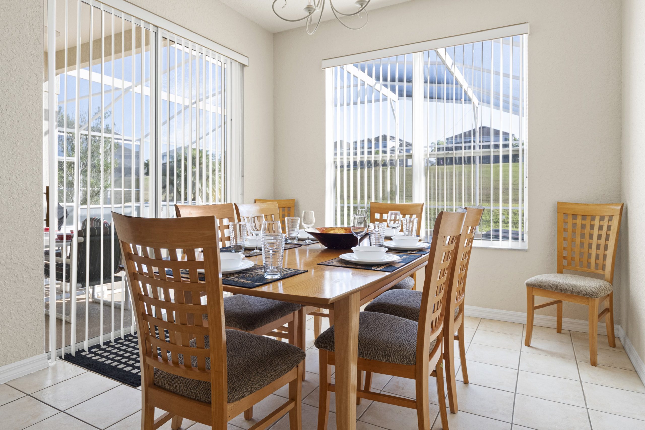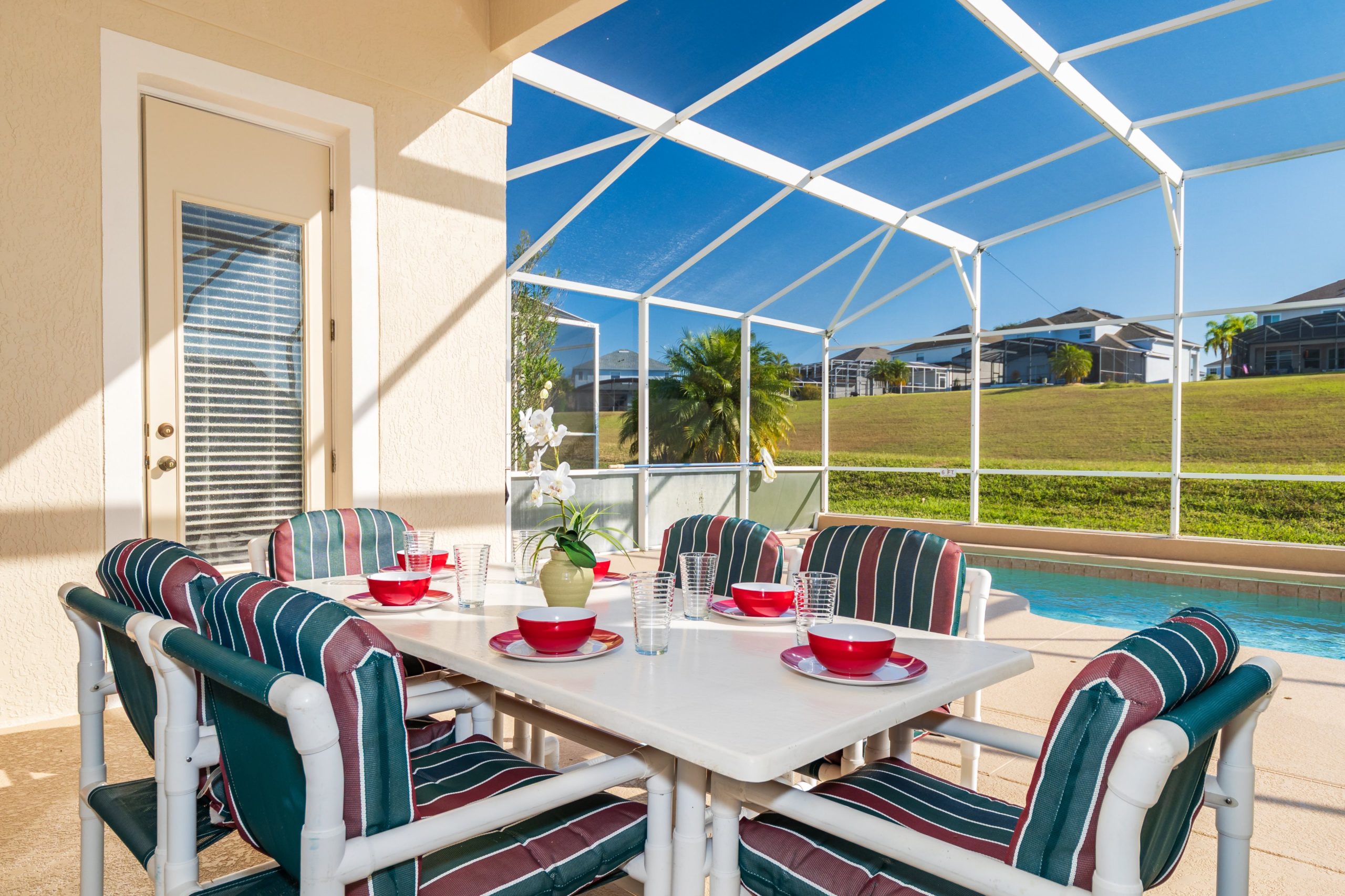 Screened lanai with table with 6 chairs. A gas BBQ is available for the use of guests.