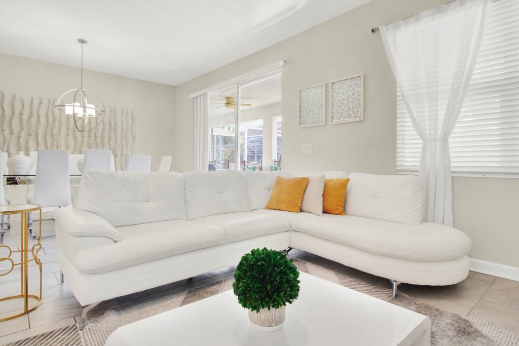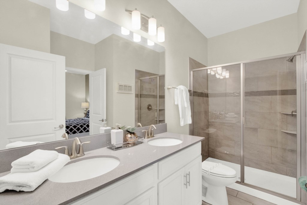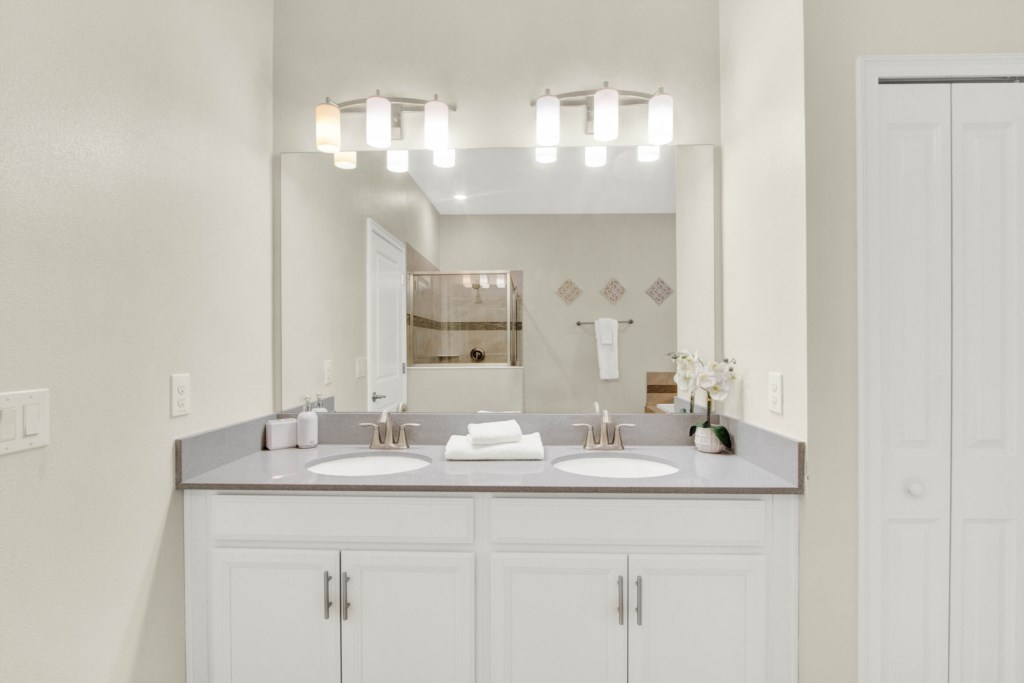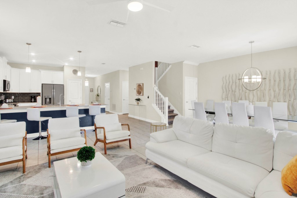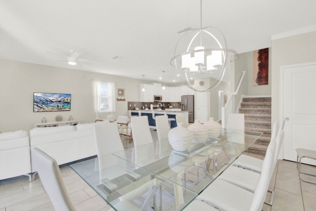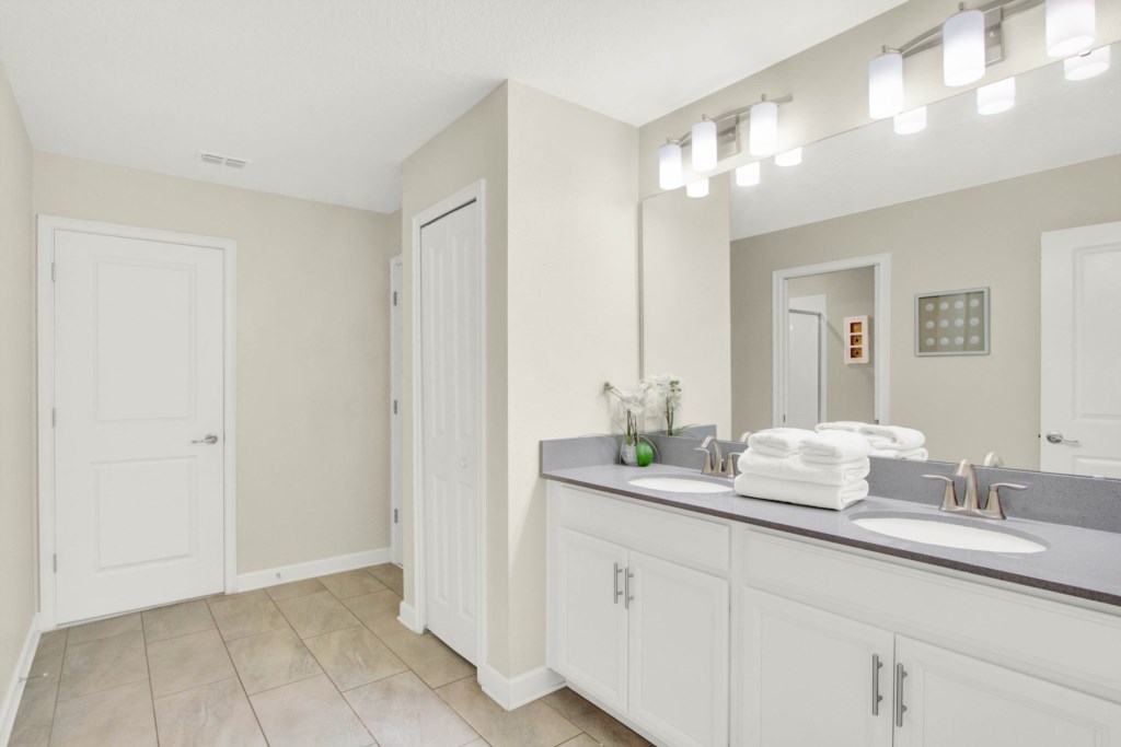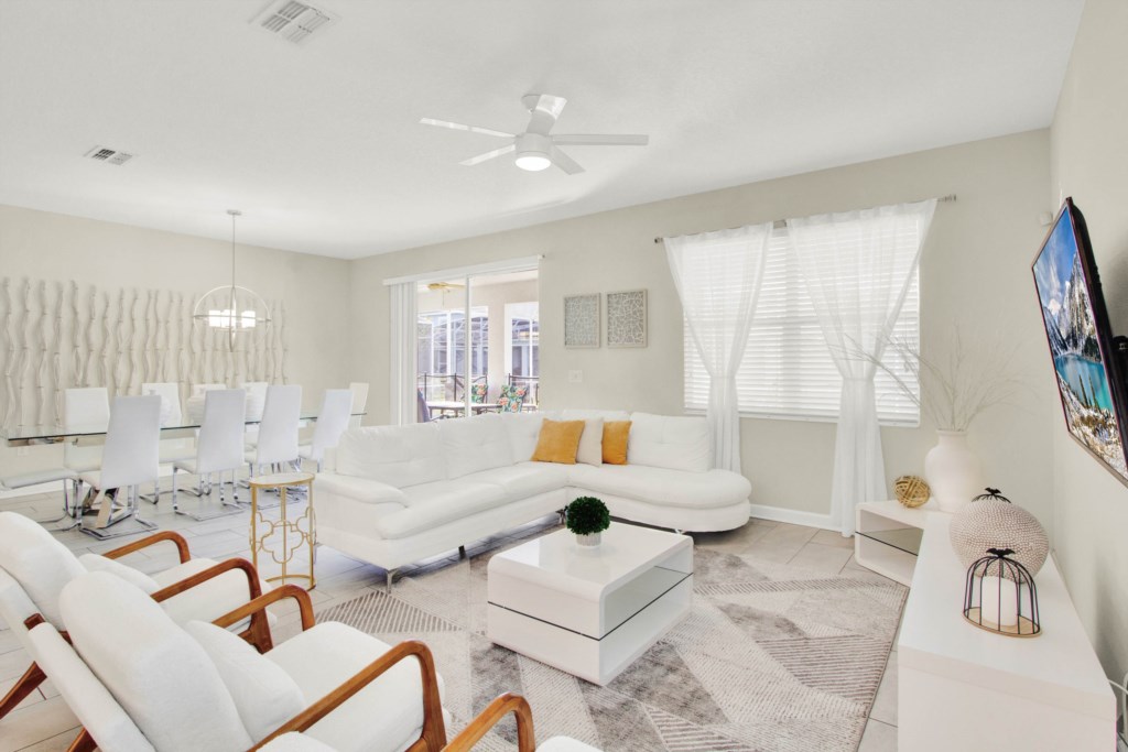 Enjoy this wonderful home on your next trip to Orlando. Perfect for multi-family party, or golf groups, this property features all the comforts of home. This spacious 8 bedroom, 5 bathroom home sleeps up to 16 in style. With 2 king bedrooms, 4 queen bedrooms and 2 twin rooms, and all have wall mounted flat screen LED TV’s. The dining room and living area offers plenty of space to congregate and enjoy meals together, and the bright and airy kitchen has all the appliances that you would expect in your own home. You can also enjoy a game of pool in the game room, or watch a movie in the home theatre, take a dip in the large pool or relax in the spa, or just relax on the south facing lanai and pool deck. Also, The Oasis Club which is a short walk, or two minute drive from the front door, has a large community pool, pool with lazy river, water slides, tiki bar, fitness centre, movie theatre, games room, and The Grill Restaurant, where you can eat in the air conditioned comfort of the Clubhouse, or pool side.