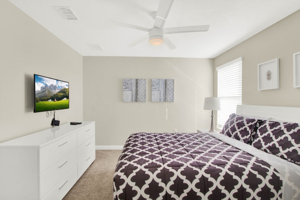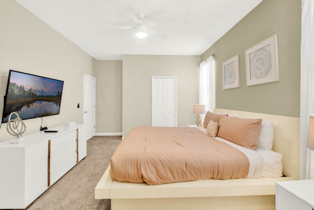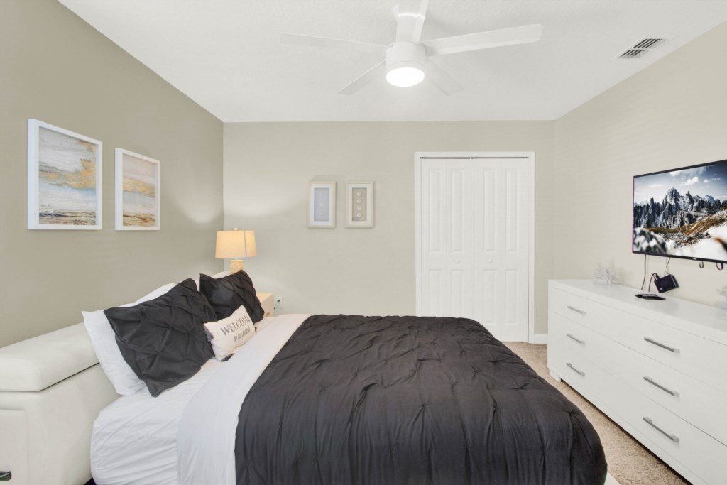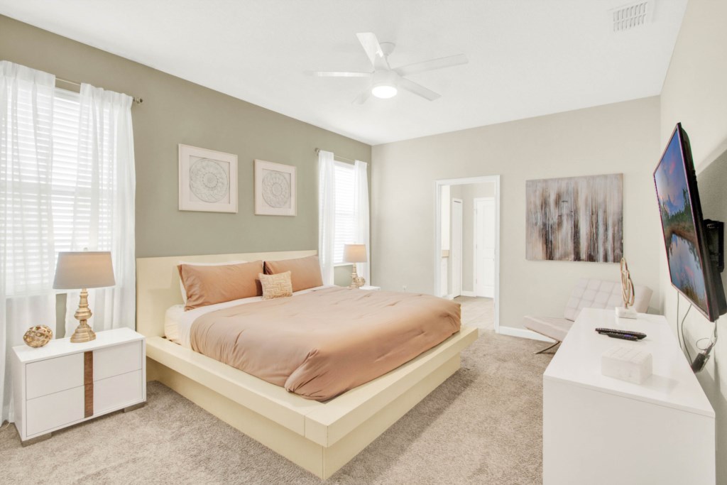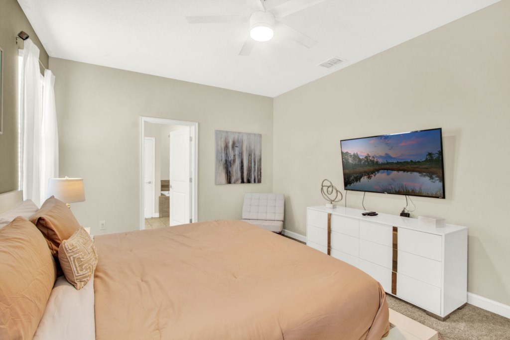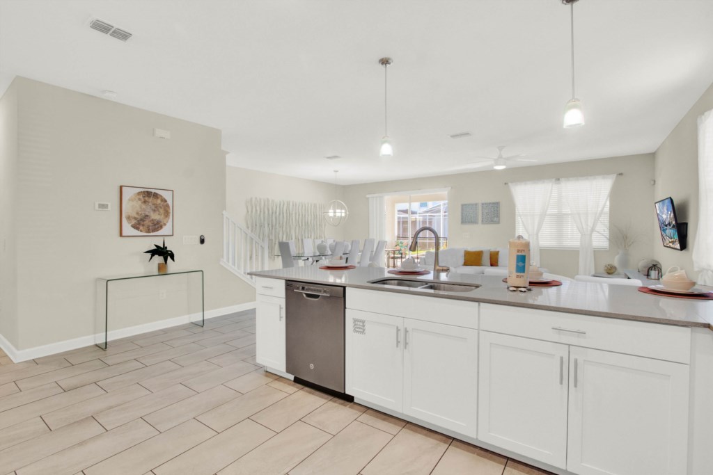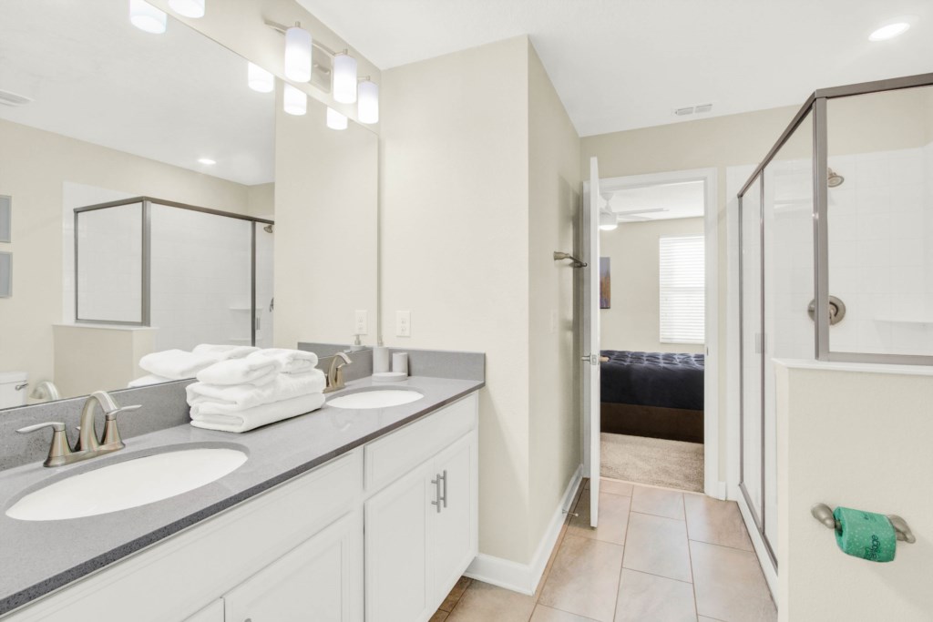 Enjoy this wonderful home on your next trip to Orlando. Perfect for multi-family party, or golf groups, this property features all the comforts of home. This spacious 8 bedroom, 5 bathroom home sleeps up to 16 in style. With 2 king bedrooms, 4 queen bedrooms and 2 twin rooms, and all have wall mounted flat screen LED TV’s. The dining room and living area offers plenty of space to congregate and enjoy meals together, and the bright and airy kitchen has all the appliances that you would expect in your own home. You can also enjoy a game of pool in the game room, or watch a movie in the home theatre, take a dip in the large pool or relax in the spa, or just relax on the south facing lanai and pool deck. Also, The Oasis Club which is a short walk, or two minute drive from the front door, has a large community pool, pool with lazy river, water slides, tiki bar, fitness centre, movie theatre, games room, and The Grill Restaurant, where you can eat in the air conditioned comfort of the Clubhouse, or pool side.
